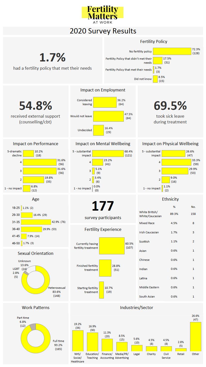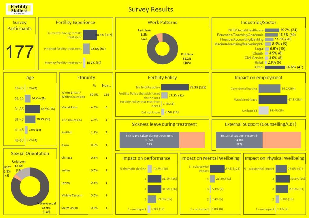 I was keen to share my design approach as the visualisation of this data took some time to get it to where it needed to be and more importantly ensure that Claire and her Fertility at Work partners were happy with the output.